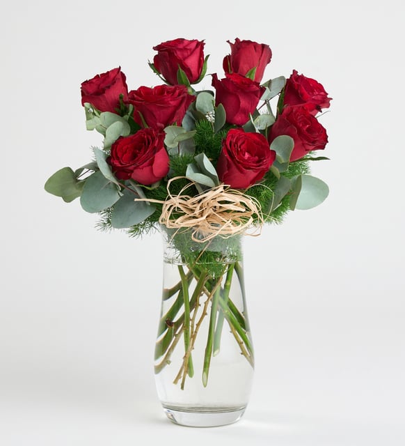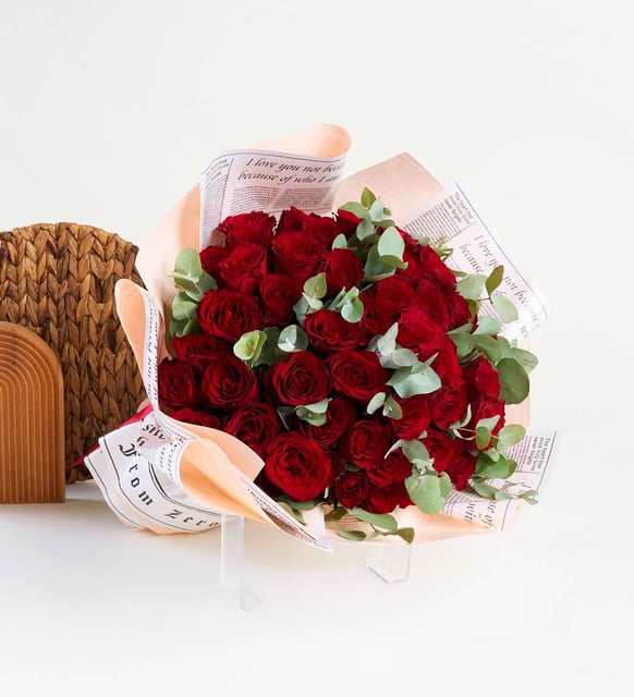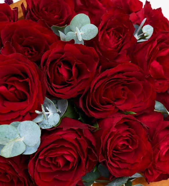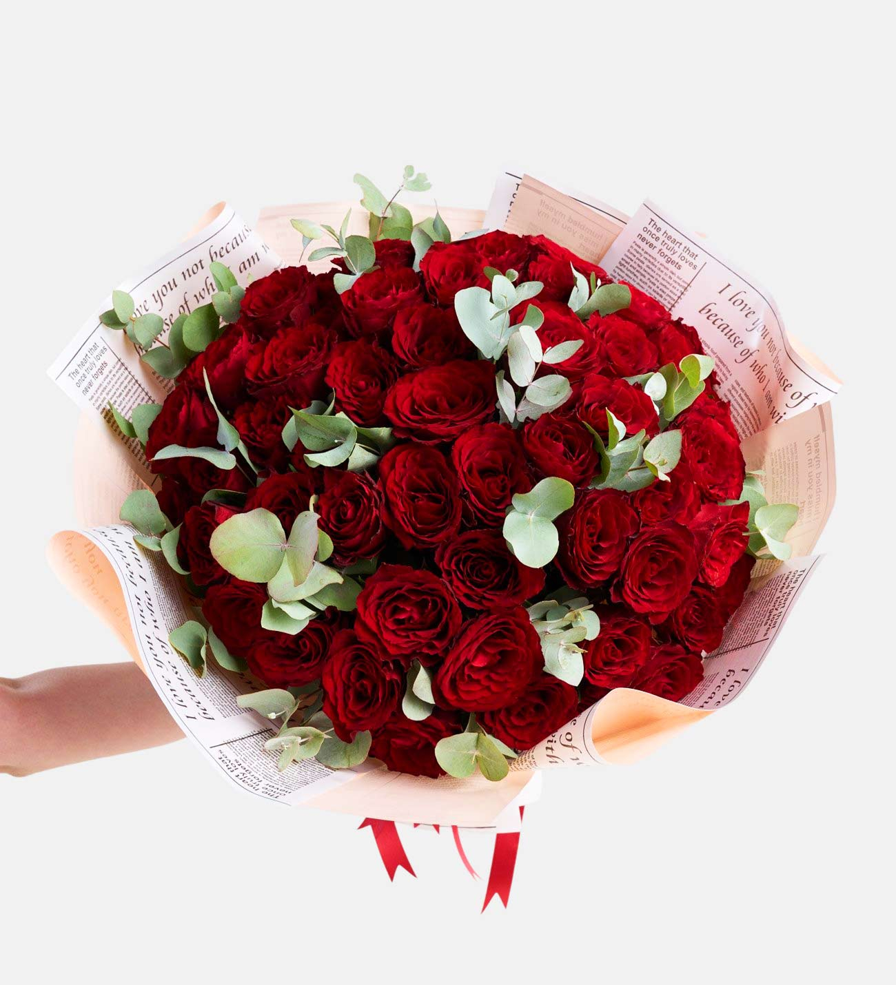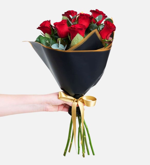 Sessiz bir itirafın, tek bir renkte çoğalan hâli. Ellinin birlikteliği, duygunun nabzını sakin bir ritme taşır; her bir gül, aynı cümlenin daha derin bir tonu gibi. Kırmızı, bir odanın ışığını yumuşatır; kalbe yakın, zamana mesafeli.