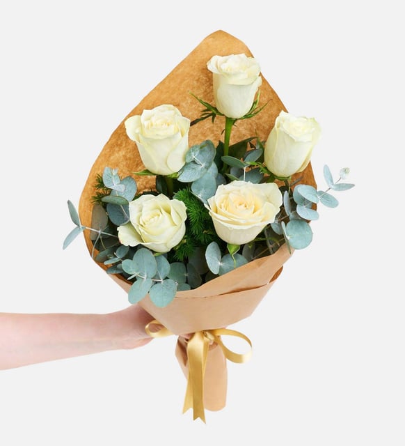 Beyazın dinginliğinde gizlenen bir söz. Beş gül, yalınlığın en zarif hâlini taşırken cipsoların ince dokusu etrafında yumuşak bir ışık gibi dolaşır. Bu buket, kalbin sakin ve berrak tarafını hatırlatan bir duruluk taşır; söylenmesi gerekmeyenleri zarafetle fısıldar.
