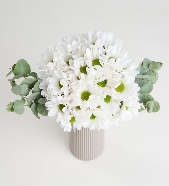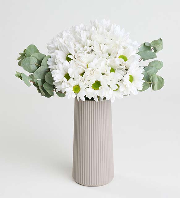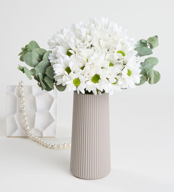 Bej Çizgili Polimer Vazoda Beyaz Papatyalar