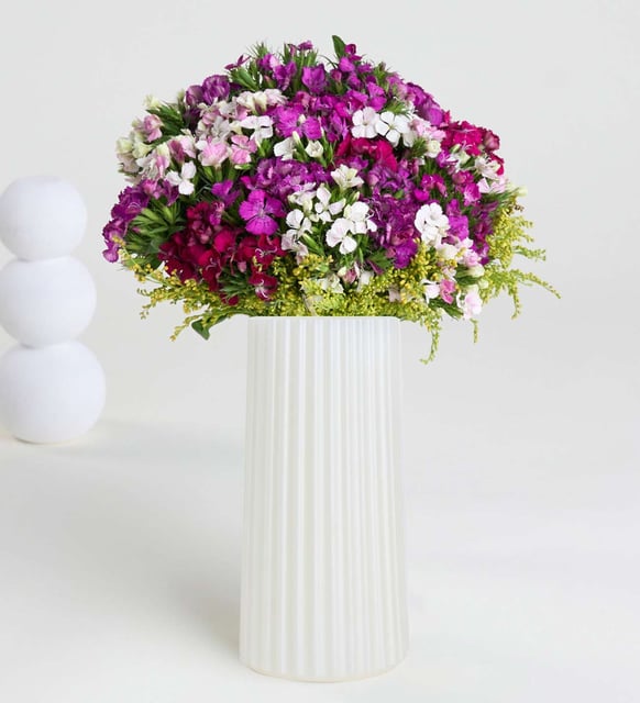 Beyaz Çizgili Polimer Vazoda Hüsnüyusuf Çiçekleri