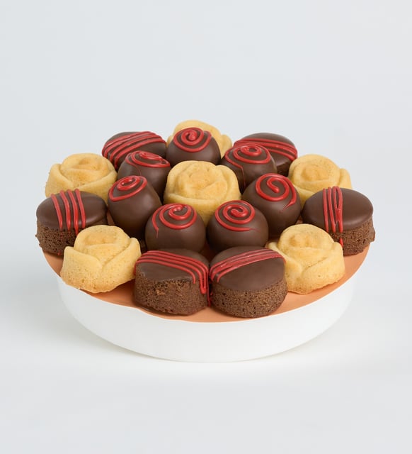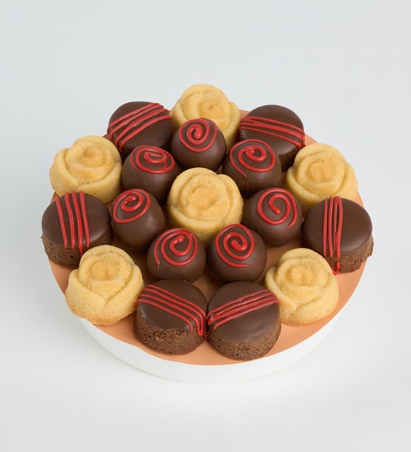 Kompakt ölçüler içinde düşünülmüş bu aranjman, paylaşılmak istenen duyguları sakin ve net bir dille anlatır. Görsel düzen kadar tatların dengesi de özenle kurulmuştur; koyu kakao notaları, sütlü ve kırmızı vurgularla hafifler, beyazın safiyeti geride temiz bir iz bırakır.