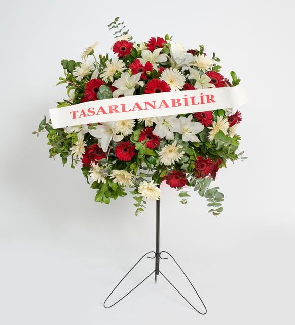 Beyazın dinginliği ve renklerin sıcak neşesi, ince ferforje çizgiler üzerinde buluşuyor. Lilyumların zarif duruluğu, gerberaların canlı tonlarına eşlik ederken, araya serpişmiş yeşil dokular kompozisyona sessiz bir ritim katıyor. Kutlamanın parlak anı ile törenin saygılı sessizliği arasında, duyguları incelikle taşıyan bir duruş.