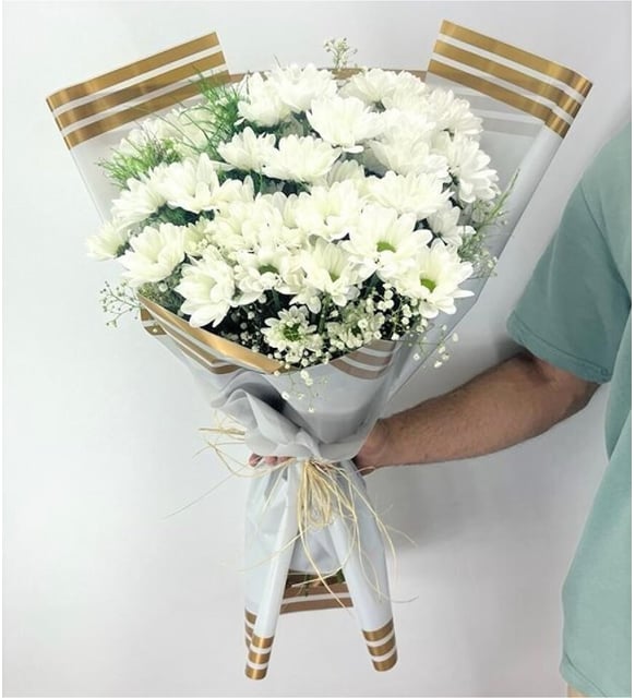 Bu buket, sade beyazın bütün tonlarını yumuşak bir denge içinde birleştirir; evde sessiz, net ve kalıcı bir huzur hissi bırakır.