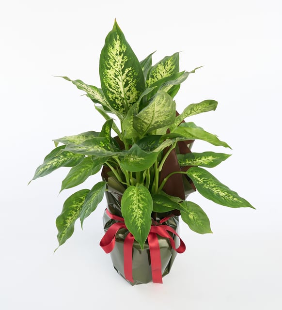 Beyaz Polimer Saksıda Camilla Difenbahya Aranjmanı