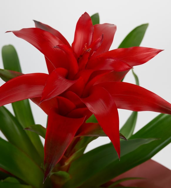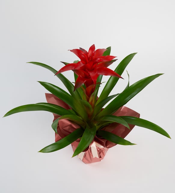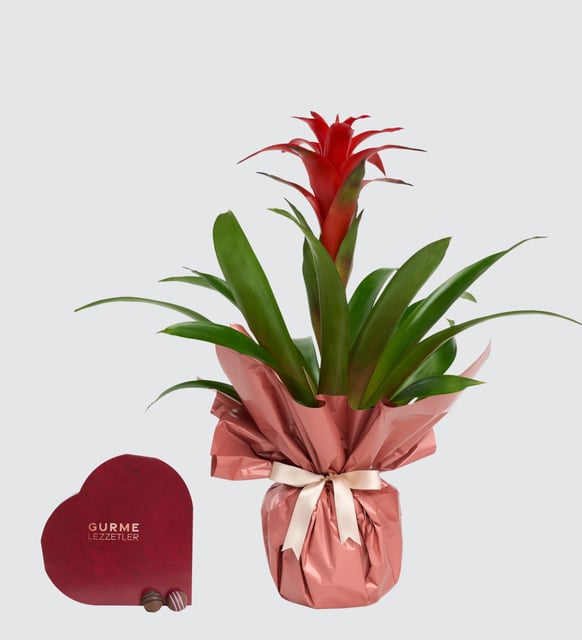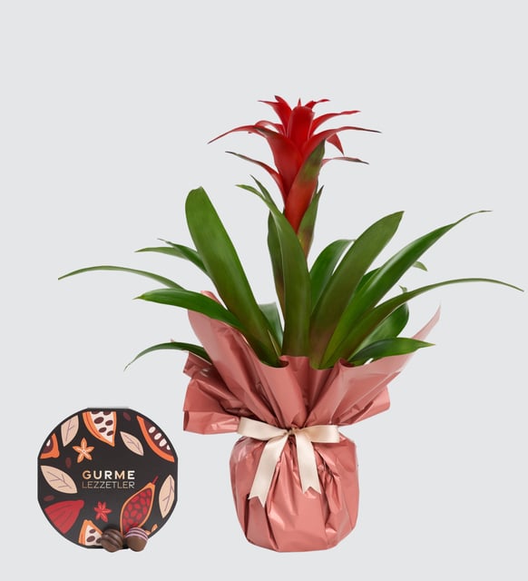 Kırmızının cesur dinginliği, yağmur ormanlarının tazelenen nefesiyle buluşuyor. Brezilya’dan gelen guzmania, mekana sükûnet ve canlılık arasında ince bir denge taşır; parlak çiçeği ve güçlü yeşil yaprakları, günün ritmine sessizce eşlik eden bir odak yaratır. Bereketin ve yeni başlangıçların habercisi gibi; evde ya da ofiste, varlığıyla atmosferi toparlar, ışığı yumuşatır.
