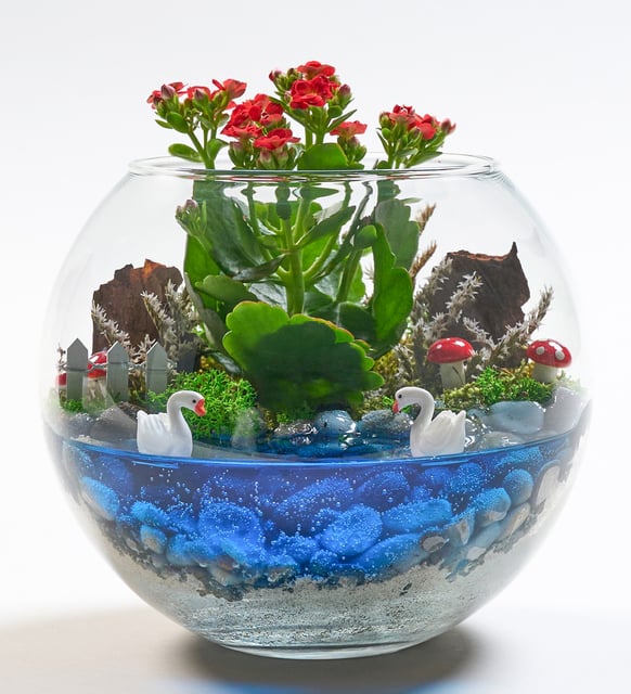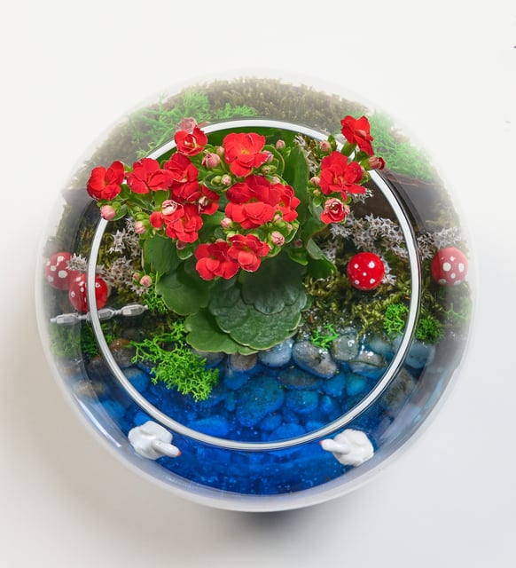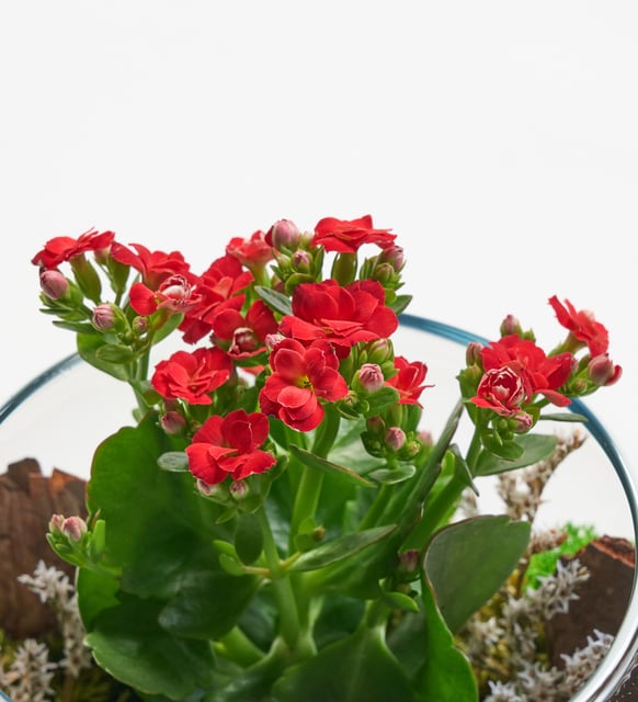 Cam Fanusta Kırmızı Kalanchoe Tasarım Teraryum