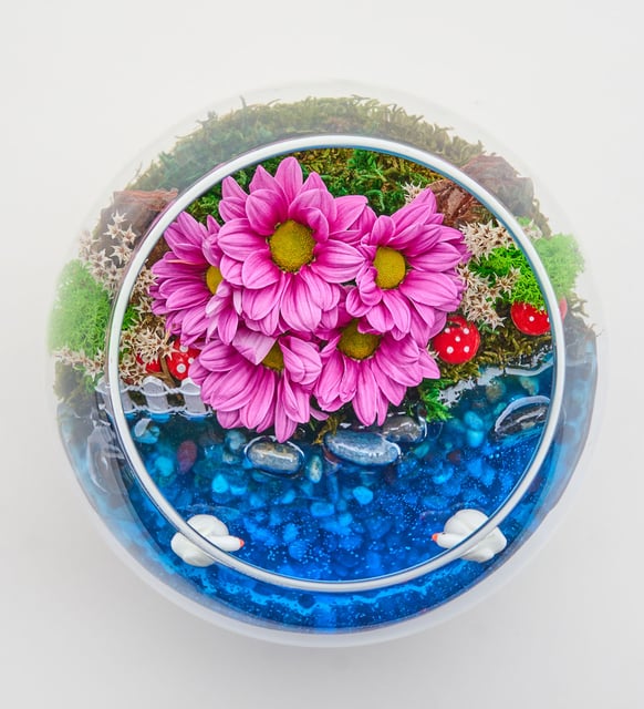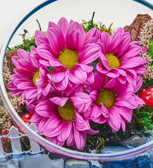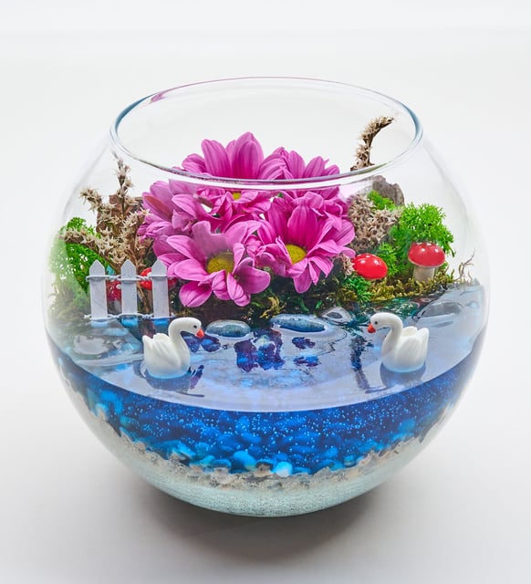 Cam Fanusta Pembe Papatya ve Kuğulu Teraryum
