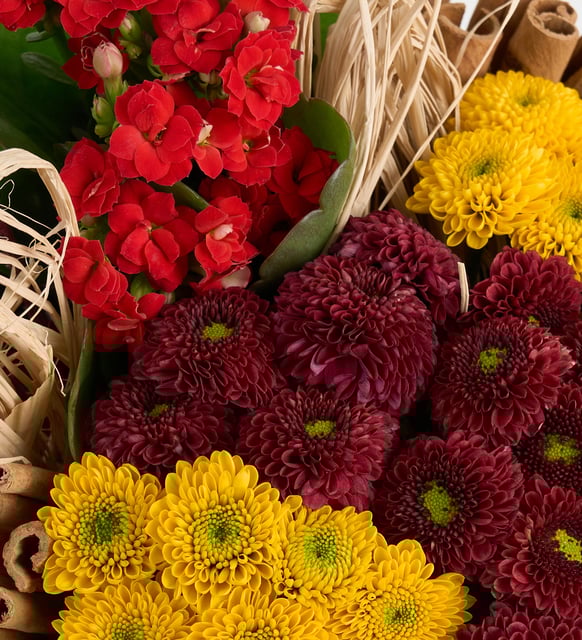 Siyah Kutuda Kırmızı Kalanchoeler ve Kasımpatı