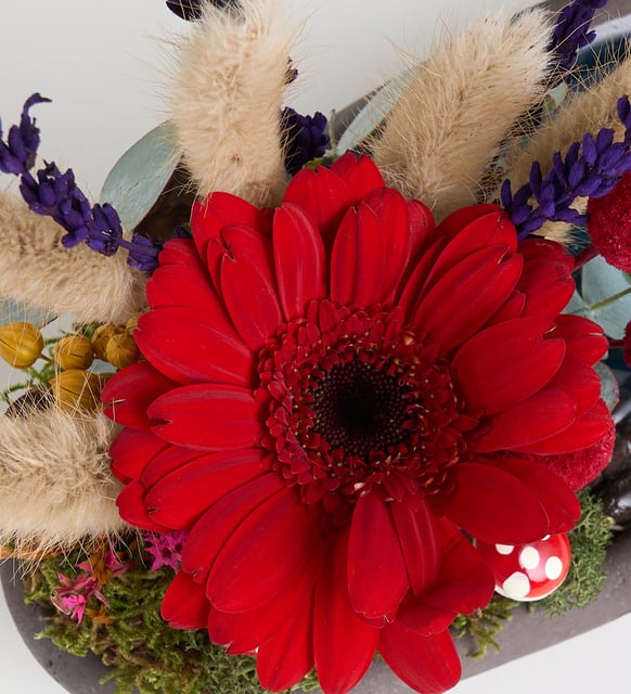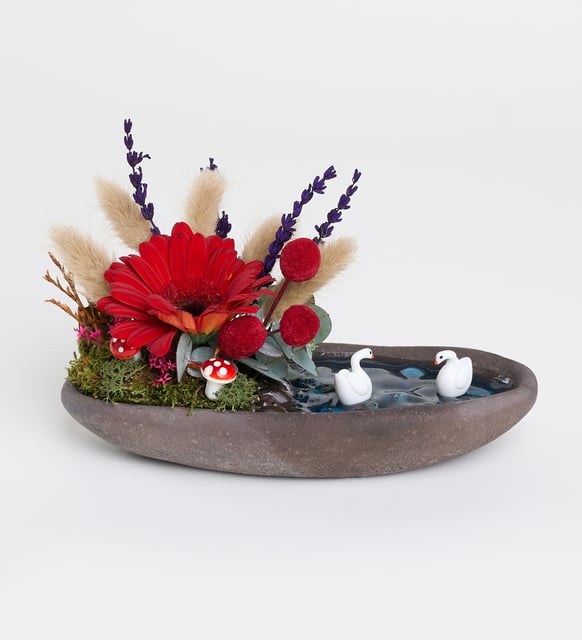 Dekor Saksıda Kırmızı Gerbera & Craspedia Teraryum