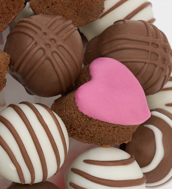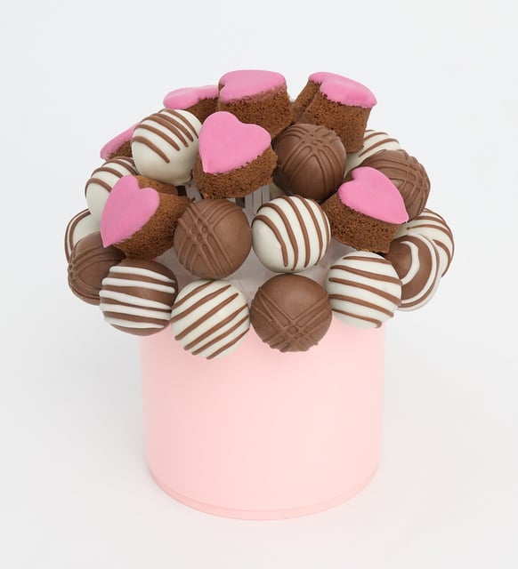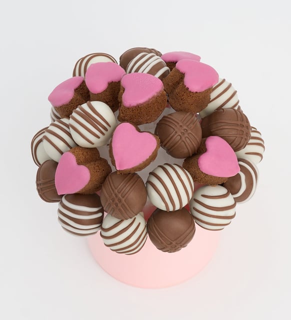 Fotoğraf Pankartlı Trüf ve Pembe Kalp Kek Buketi