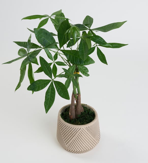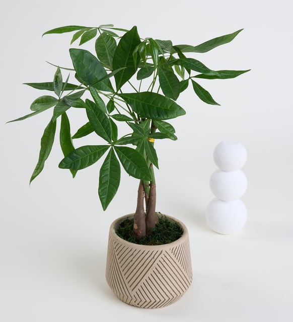 Geometrik Çizgi Desenli Saksıda Pachira