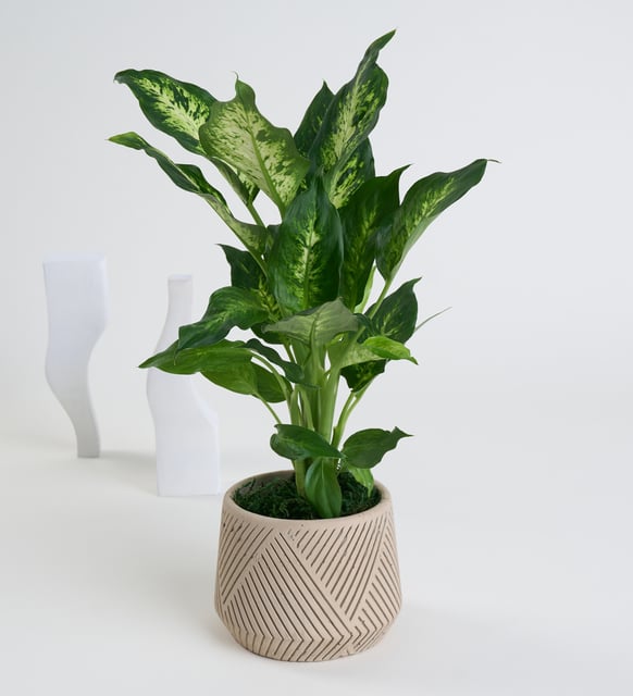 Geometrik Çizgili Beton Saksıda Camilla Difenbahya