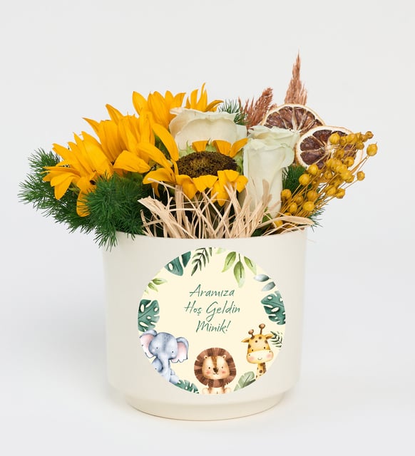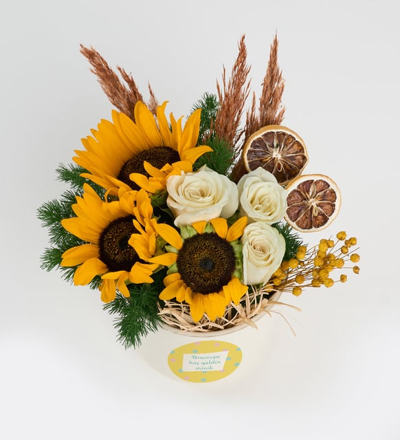 Hoş Geldik Minik Stickerlı Ayçiçekleri ve Beyaz Güller