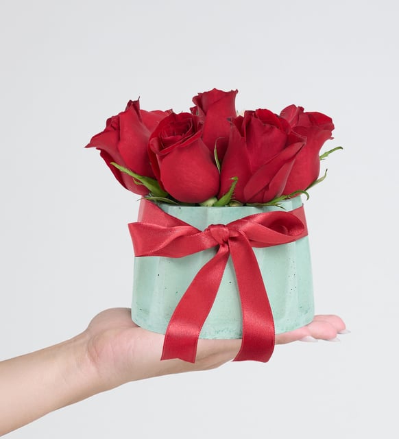 Turkuaz Sütun Saksıda 8 Kırmızı Gül