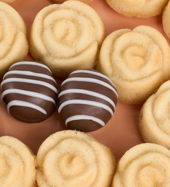 Tek bir harf, sessiz bir başlangıç gibi. Koyu kakao trüflerin derin tonları, beyaz gül biçimli keklerin berrak zarafetiyle yumuşak bir dengeye kavuşur. Sütlü konfiserinin ipeksi dokunuşları, sahneyi tatlı bir ışıkla tamamlarken kahverengi taban üzerinde sakin, düzenli bir ritim hissedilir. Görünüş ve lezzet arasında kurulan bu uyum, kişiye adanmış bir anın hafifliğini taşır.