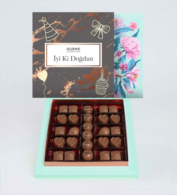 İyi Ki Doğdun Güllü Çiçek Aranjmanı ve Gurme Çikolata Kutusu