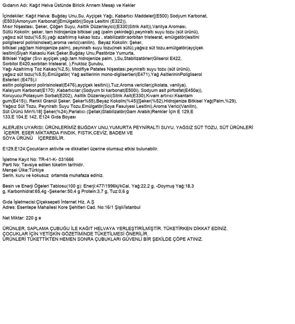 Çocukluğun hafif çıtırtısı, yeni demlenmiş çayın buğusuna karışan tatlı bir anı. İncecik kağıt helva, sütlü ve fildişi konfiseri kuvertürle nazikçe kucaklanırken, üstünde siyah kakaolu silindir kekler sessizce sıralanır. Top granül şeker tanecikleri, anların üzerine ışık düşürür gibi. “Biricik Annem” sözcükleri ise, telaşsız bir teşekkürün en yumuşak hâli.