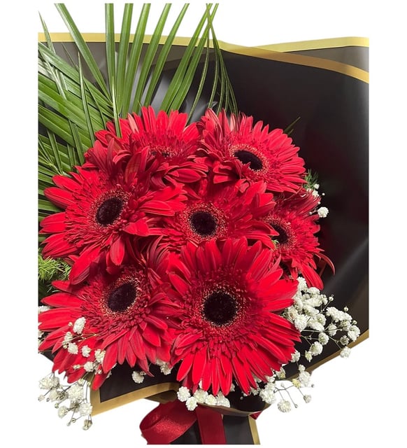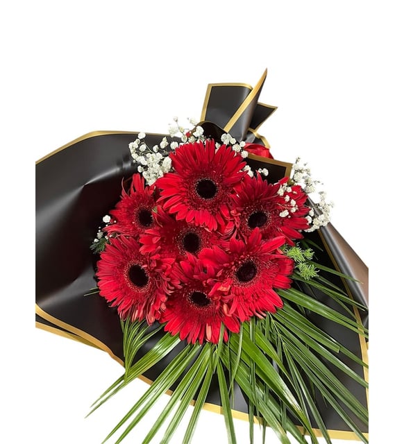 Kırmızının içtenliği, sade hatlı gerbera başlarında yumuşak bir anlatıya dönüşür. Bu buket, samimiyetin ve dostluğun sıcak ritmini taşır; bir odanın ışığını incelikle toplar, sözcüklerin yetmediği anlarda kalbe yaklaşır.