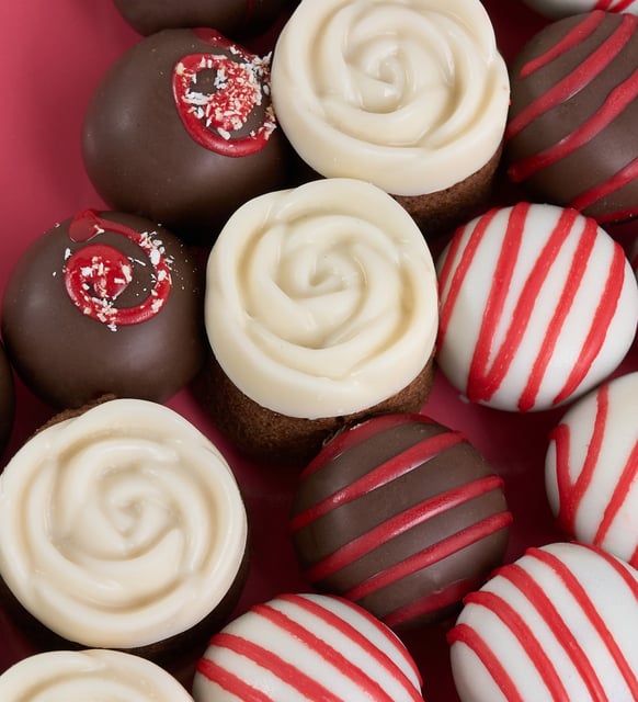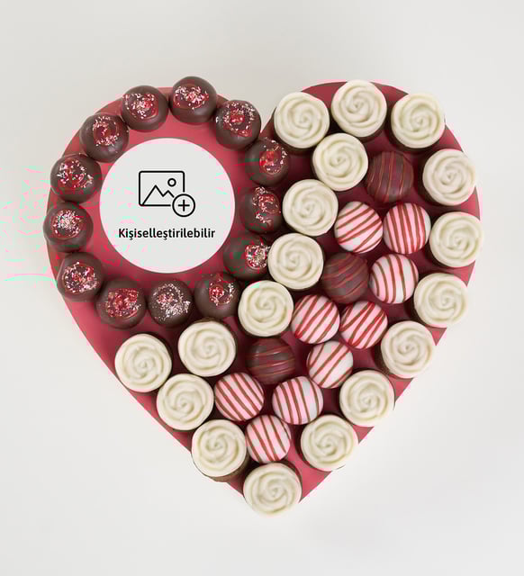 Kişiye Özel Kalp Straforda Gül Desenli Trüf Kekler