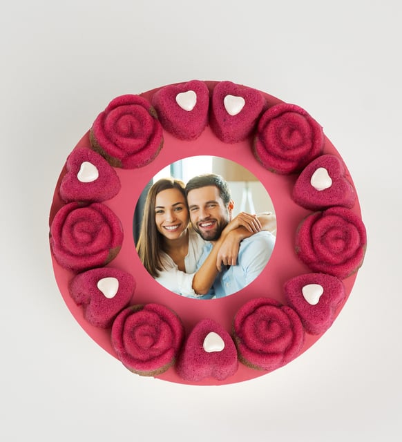Kalbin sesini yumuşacık bir dokuyla fısıldayan küçük bir tatlı ritüel. Kırmızının sıcaklığı gül katlarında, kalp biçiminde toplanan tat ise beyaz sedefin nazik ışıltısıyla tamamlanır. Fildişi konfiseri kuvertürün ipeksi hissi, her lokmayı sakince parlatır. Ortadaki fotoğraf alanı, anıların en dingin kucaklaşması; bakışın değdiği yerde, sevgi bir kez daha hatırlanır.