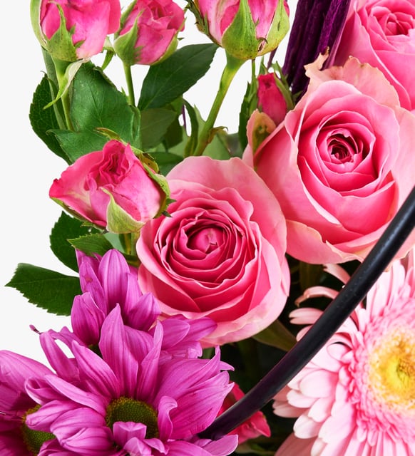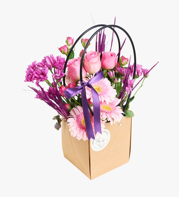 Kraft Çantada Pembe Güller ve Pembe Gerberalar