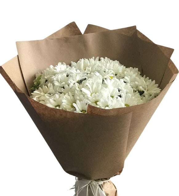 Kraft Kağıtta Beyaz Papatya Buketi
