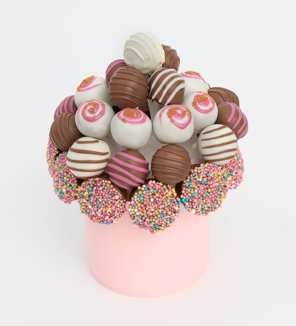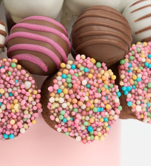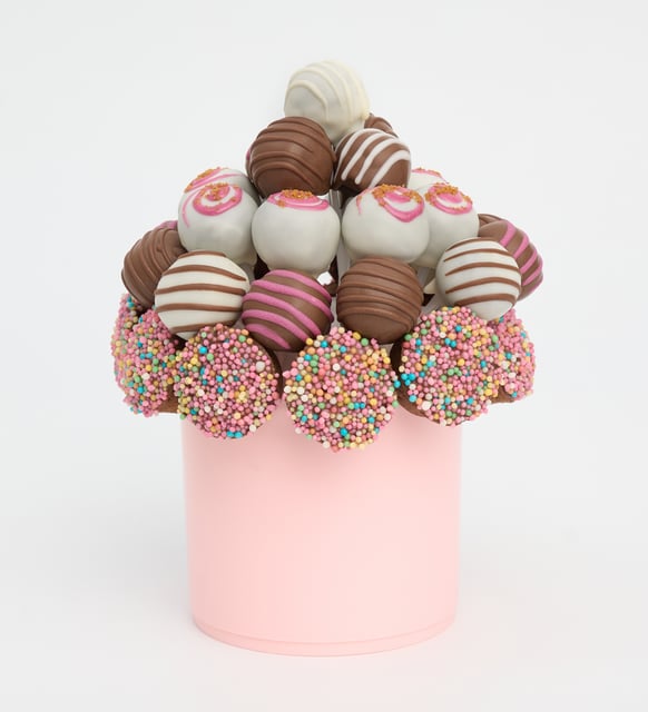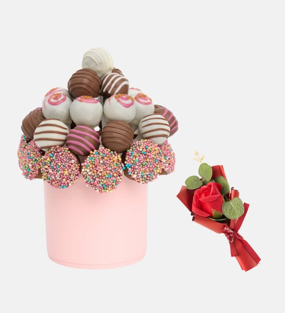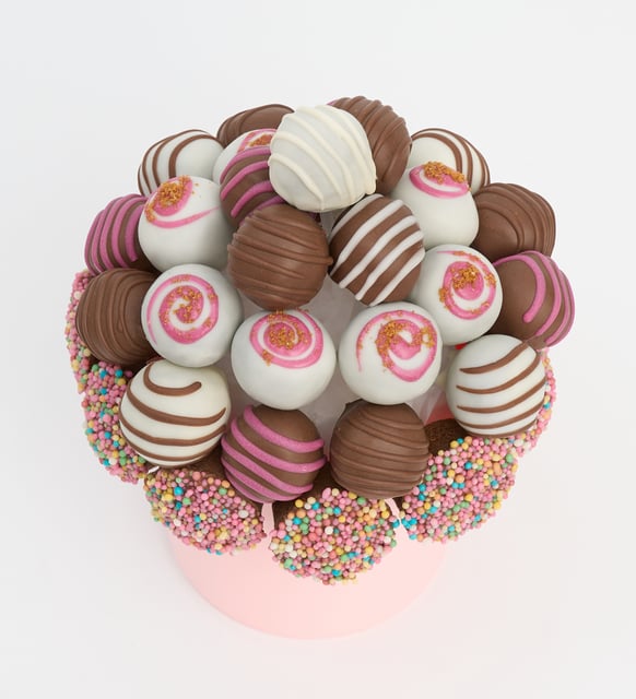 | Süsleme | Karışık granül şeker kaplamalı siyah kakaolu silindir kek (10 adet) ve sütlü konfiseri kaplamalı siyah kakaolu trüf kek (6 adet); Lotus Biscoff®, granül şekerleme ve beyaz süslemeler ile pembe saksı içinde hazırlanır. |