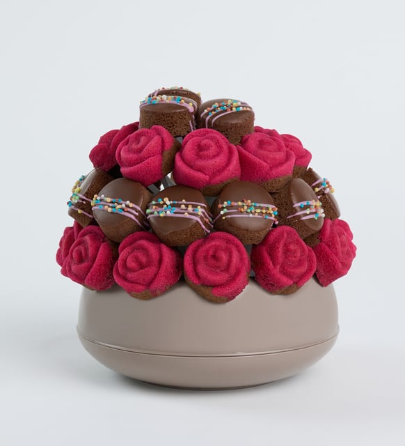 Kahverengi Saksıda Gül ve Şeker Süslemeli Kekler