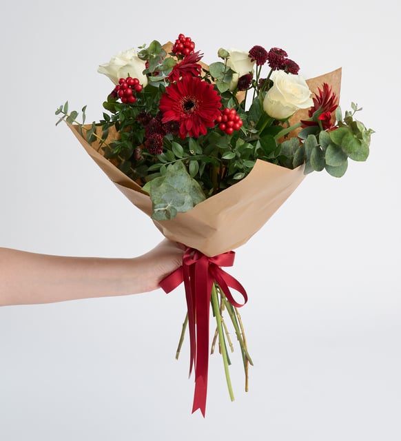 Kraft Bukette Kokina, Kırmızı Gerbera ve Krizantem