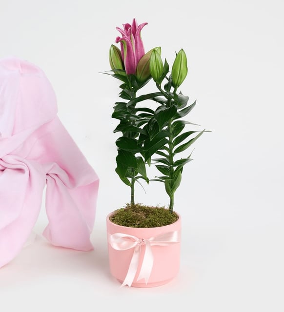 Pembe Beton Saksıda Pembe Lilyum