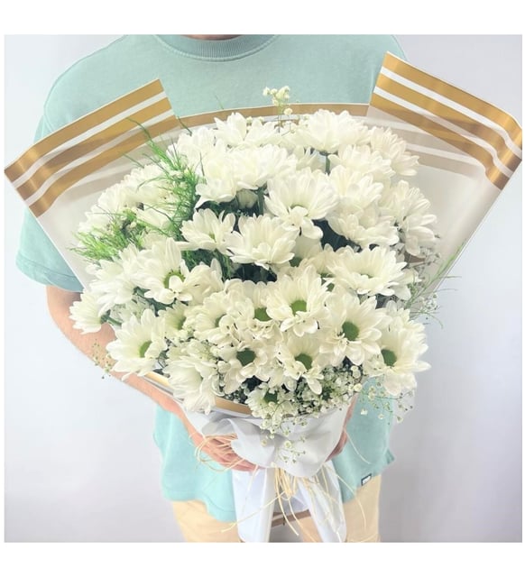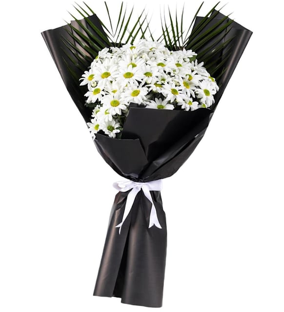 Siyah Ambalajlı Beyaz Papatya Buketi
