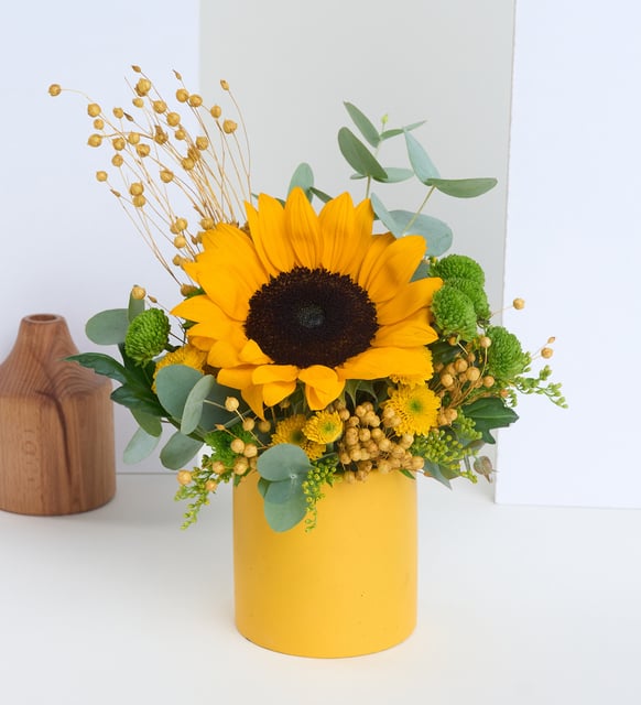 Ayçiçeği ve Beyaz Papatyalar Mutluluk Aranjmanı