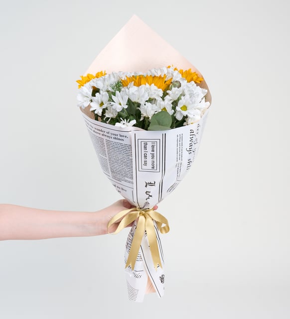 Gazete Bukette Ayçiçekleri & Desenli Gurme Lezzetler