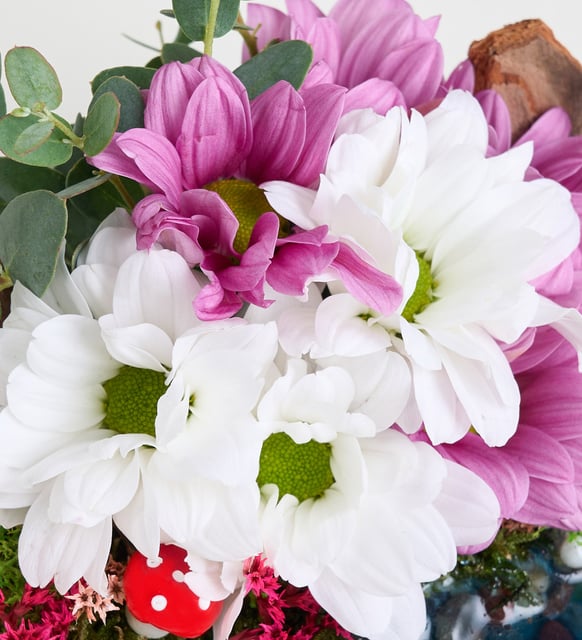 Ring Saksıda Beyaz ve Pembe Papatya Teraryum