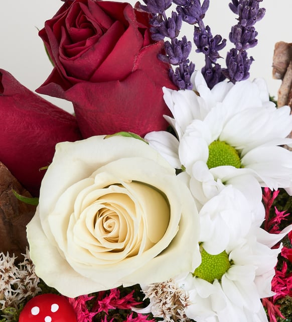 Ring Saksıda Kırmızı & Beyaz Gül & Papatya Teraryum