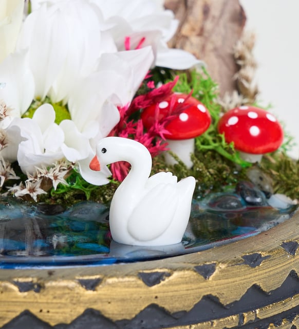 | Süsleme | Çakıl taşı, kuğu, kum, mantar, moss-dired, mum jel, tatarika, yosun, ağaç kabuğu, beyaz ve mor yapay bitkiler. |
