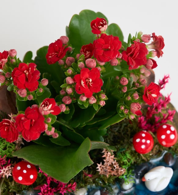 Ring Saksıda Kırmızı Kalanchoe Teraryum