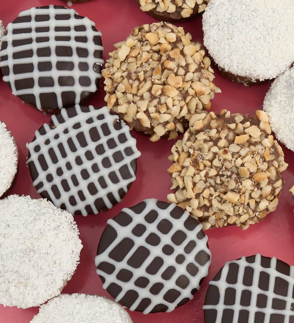 Kakaonun derin, sakin tonları; hindistan cevizinin pudra gibi hafifliği ve fındığın sıcak çıtırtısı bir dairede buluşuyor. Bitterin dingin gölgesiyle yumuşayan bu düzenleme, küçük kutlamaların, içten özürlerin, zarif tebriklerin sessiz dilini taşır. Bir araya gelişindeki ritim, sabahı yumuşatır, akşamüstünü tatlı bir mola gibi uzatır.