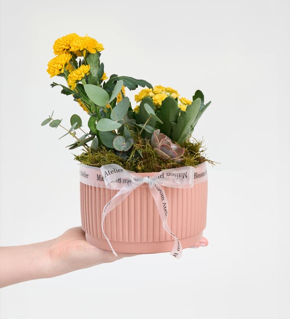 Kiremit Saksıda Sarı Kalanchoe ve Echeveria