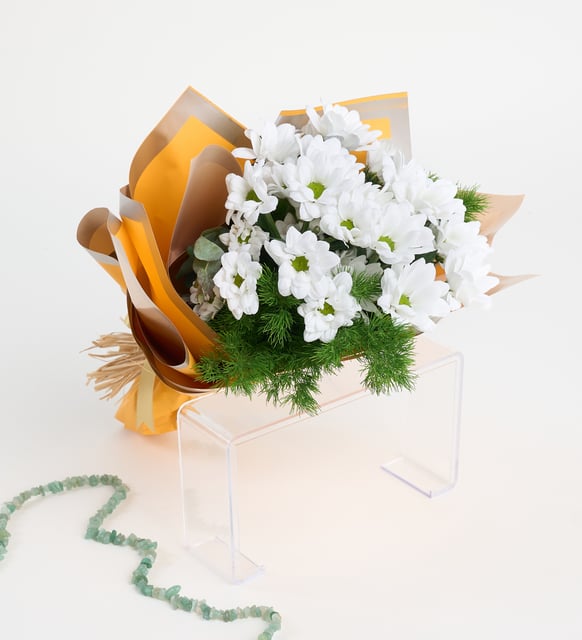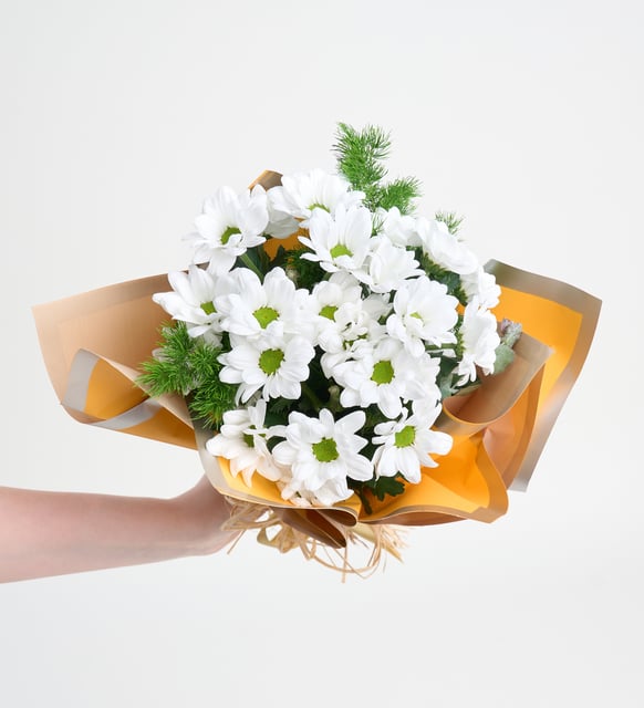 Sarı Bukette Beyaz Papatyalar özenle seçilmiş taze çiçeklerden hazırlanmıştır. Sevdiklerinize özel anlarınızda güzel bir hediye seçeneğidir. Uzman floristlerimiz tarafından titizlikle hazırlanan bu ürün, kaliteli malzemeler kullanılarak sizlere sunulmaktadır.