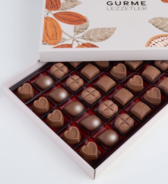 Gündüz kahvenin yanında yavaşlayan bir ân, akşamüstü ışığında şık bir molanın eşlikçisi, özel bir tebriğin suskun ama derin ifadesi. Kutu, sadeliğin seçkin tonlarında, her zevke saygılı bir duruşla; çikolatanın asıl işini, hatırada yer edinmeyi, usulca yerine getirir.