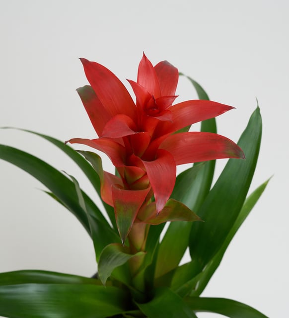 Turuncu ile mavinin karşılaşması, iç mekanda sakin bir enerji ve ferah bir denge yaratır. Guzmania’nın derin kırmızısı, tasarımın tam kalbinde yumuşak bir odak noktası olur; modern kağıt dokusu ve narin kurdele, hareket ile zarafetin hassas bir uyumunu fısıldar. Gün ışığının değişen tonlarında, bu aranjman bulunduğu yere ılık bir canlılık ve dingin bir neşe taşır.